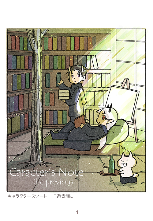 サイレントマンガに挑戦してました。この作品の前のキャラクターズノートは1年前とかでずいぶん間があいたので変わったことがしたかったのかな。表紙は側近に出した作品の登場人物をたくさん描きました。